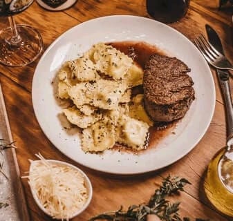 Cowboy – cream cheese, braiset brisket, caramalized onions. mushroom